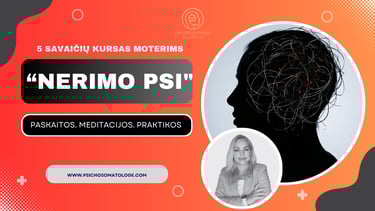 "NERIMO PSY" – tai 5 savaičių kursas apie dažniausias nerimo priežastis, jų prigimtį bei būdus, kaip grąžinti sau vidinę ramybę per holistinį sąmoningumą, paprastai ir be "vandens".